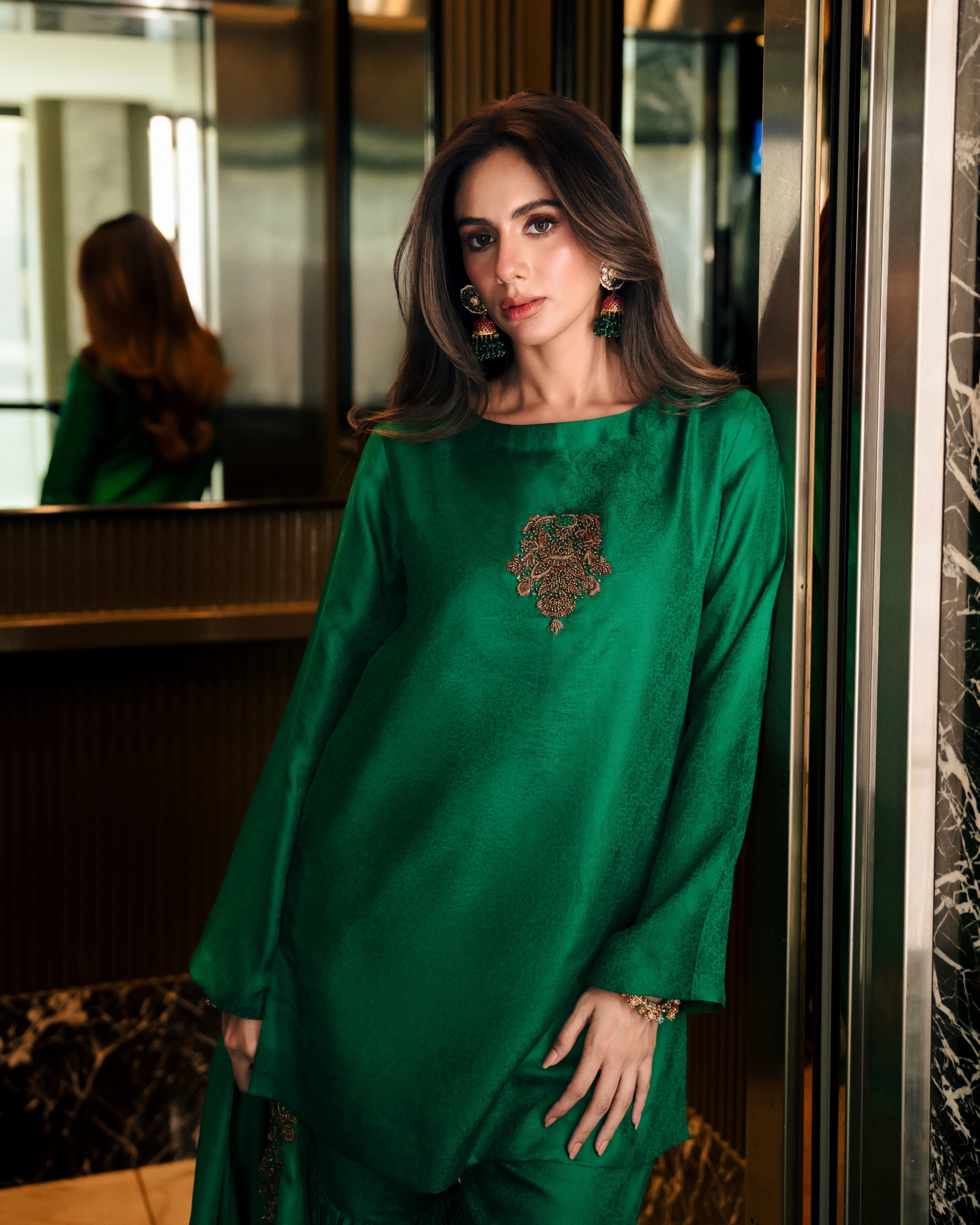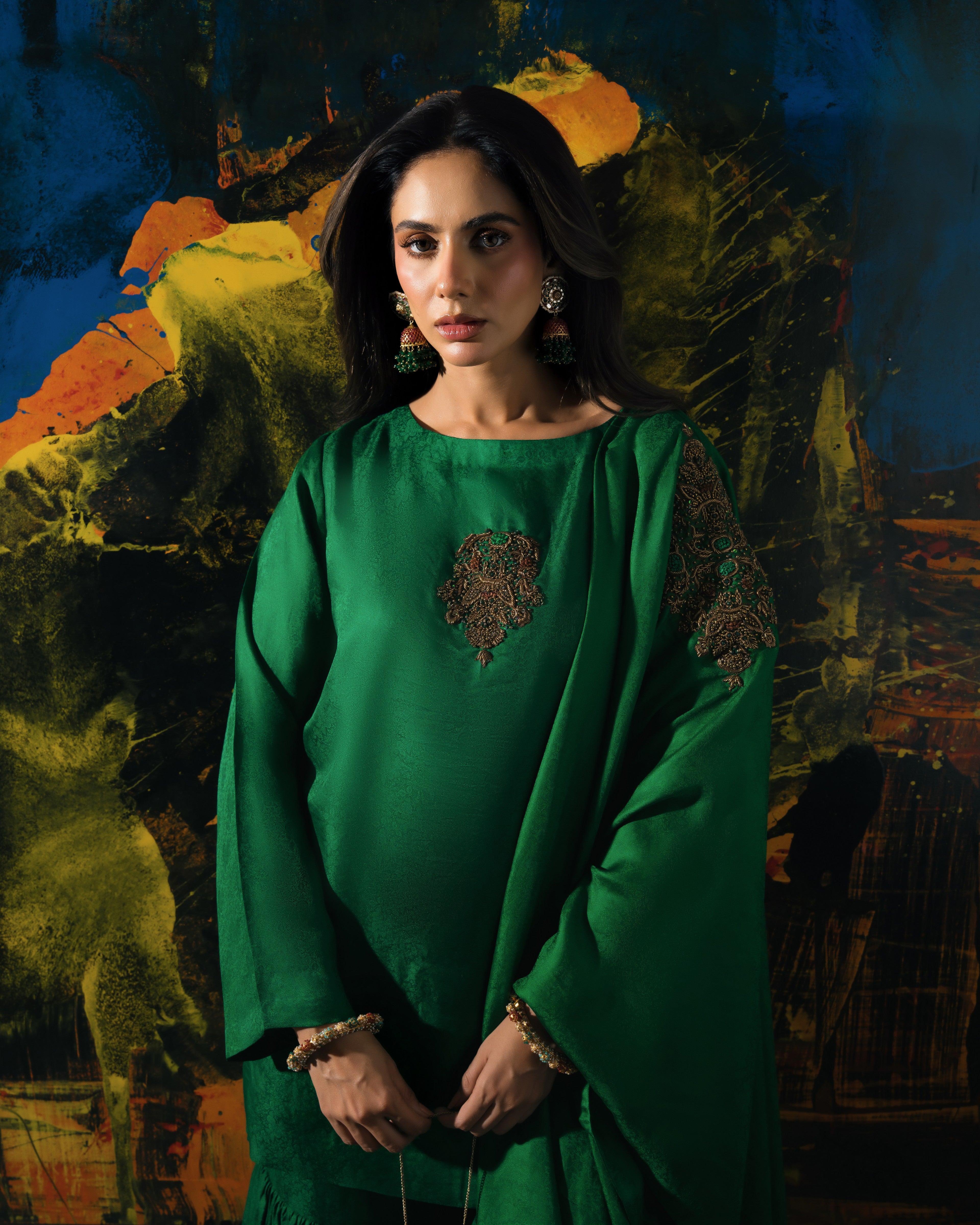 That said, premium fabrics, hand embroidery, and texture are always more striking in person. Slight variations in handwork are natural and reflect the artisanal nature of the piece, not inconsistency.